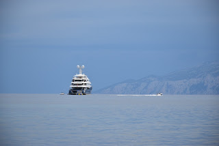 Turning off the dual carriageway and driving to Dorgali a tunnel takes you through a line of high hills and then a few miles down to the coast. Before the tunnel it was an interminable switchback track over the top or a boat ride across the bay. It's an international marine reserve crystal clear water carpets of sea grass and some sensational snorkelling. Fish are in abundance with all the usual suspects present along with some quite exotic wrasse that I don't think I have seen before, yes there are dolphins and occasionally the odd whale, but the bay is principally fabled as being the last bastion of the Monk Seal. (Readers may remember his popular day time detective series in the 90s) Monk Seal were thought to have been wiped out as he is a timid beast who likes a cave and little noise who probably spoke out against the tunnel through the top of the mountain when it was subjected to the planning committee.