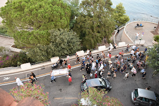 On our first night the bones of our lady of some such thing or other were paraded through the streets